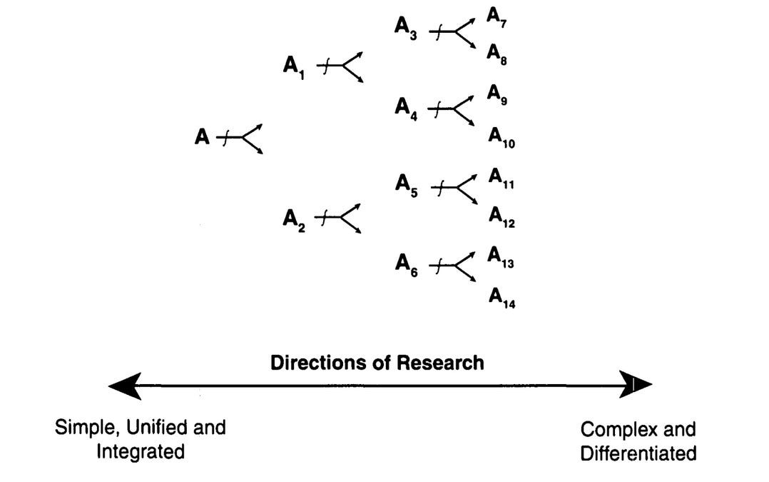 A function "A" may differentiate into A1 and A2. Each of these may differentiate into two more, and each of those into two more, and so forth (Figure 3) (7:166, 8:102).