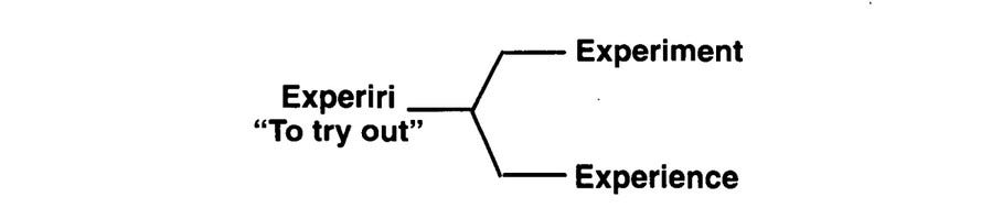 Subjective and objective factors are embodied in the two basic elements of the scientific method: observation and experimentation. "Experiment" refers to the process of objectifying a phenomenon. It is instructive to note that it comes from the Latin root "experiri," meaning to "try out," which is also the root of the word "experience" (Figure 6) (1:644-645).