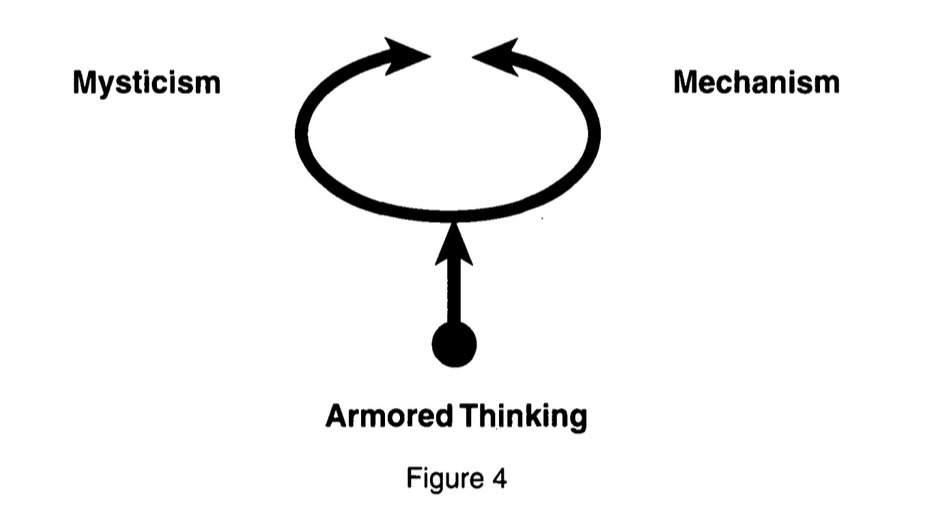 Reich identified mechanism as one of the major forms of armored thought. Its antithesis is mysticism (Figure 4) (9).